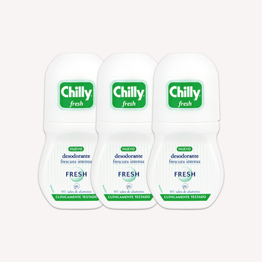 Pack 3 Chilly Desodorante Roll On Fresh Sin Aluminio 48 Horas 50ml