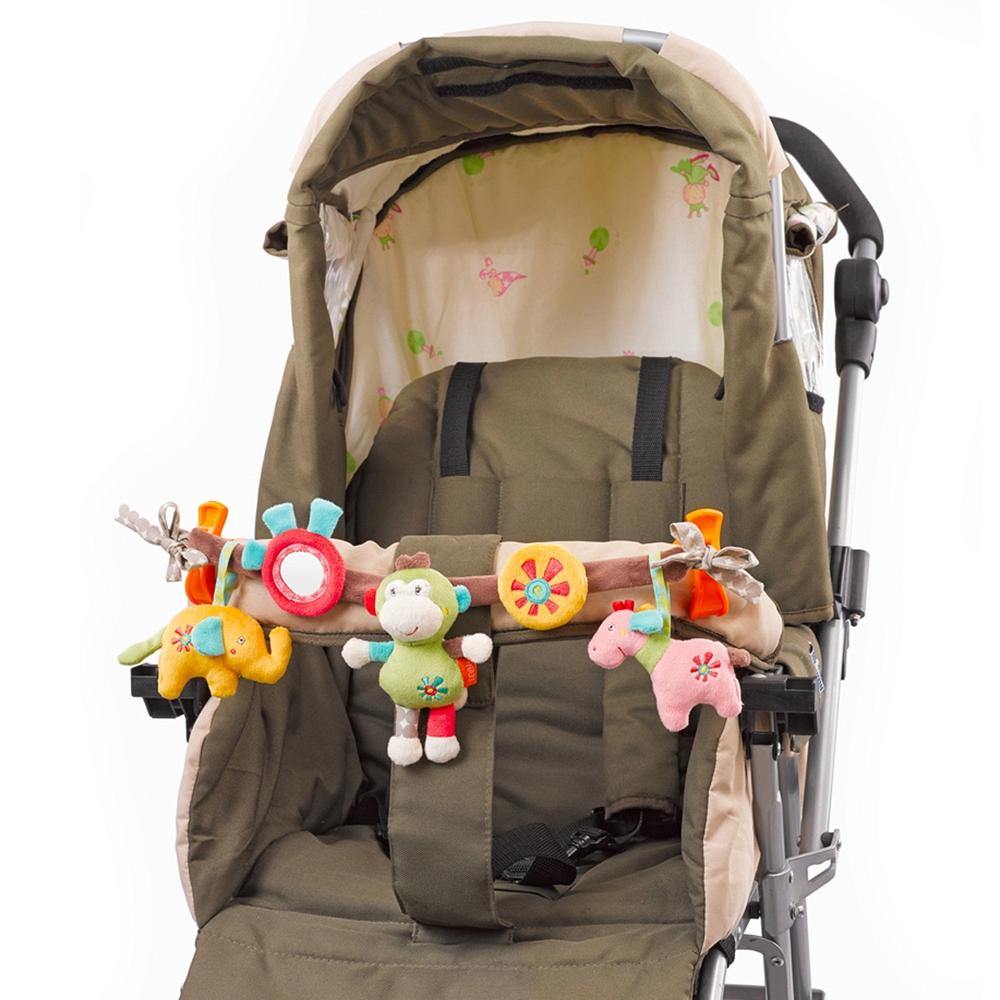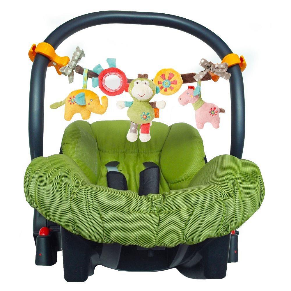 Cadena móvil con bonitas figuras para colgar de forma practica en cochecitos, sillas, cunas... Los animales se mecen alegremente de un lado a otro y despiertan la curiosidad de los bebés: los recién nacidos miran con fascinación a los coloridos animales, los bebés de pocos meses comienzan a agarrarlos, fomentando así las habilidades motoras.