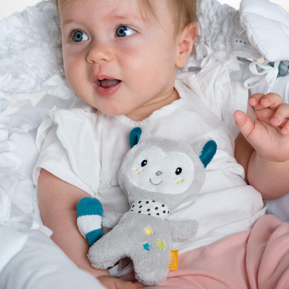 El pequeño gato entrena el sentido del oído y el tacto del bebé, crea una curiosidad natural y anima a sentir y jugar: el gato con papel arrugado es un compañero devoto para los bebés desde el nacimiento.