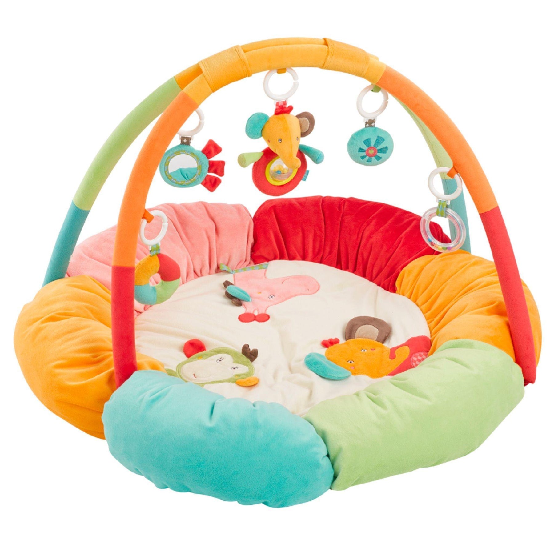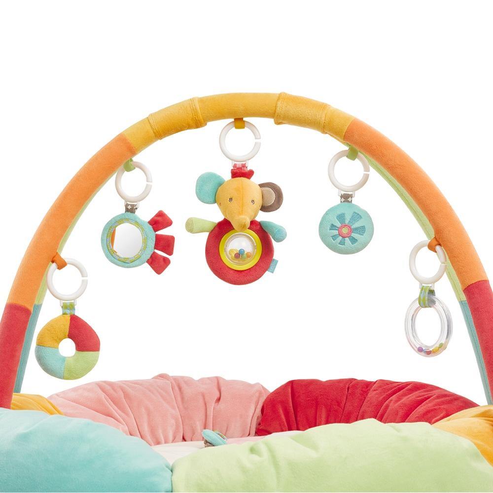 El suave gimnasio de actividades con 5 juguetes extraíbles está hecho de materiales especialmente suaves y garantiza a los bebés un confort óptimo gracias al borde acolchado. Promoción dehabilidad de agarre y tacto: los juguetes colgantes en los arcos son fáciles de agarrar para las manos de los pequeños y aumentan de manera lúdica las habilidades motoras del bebé desde el nacimiento. ¡el primer gimnasio para los exploradores del mundo! Material: felpa acolchada. Tamaño: Ø 85 cm