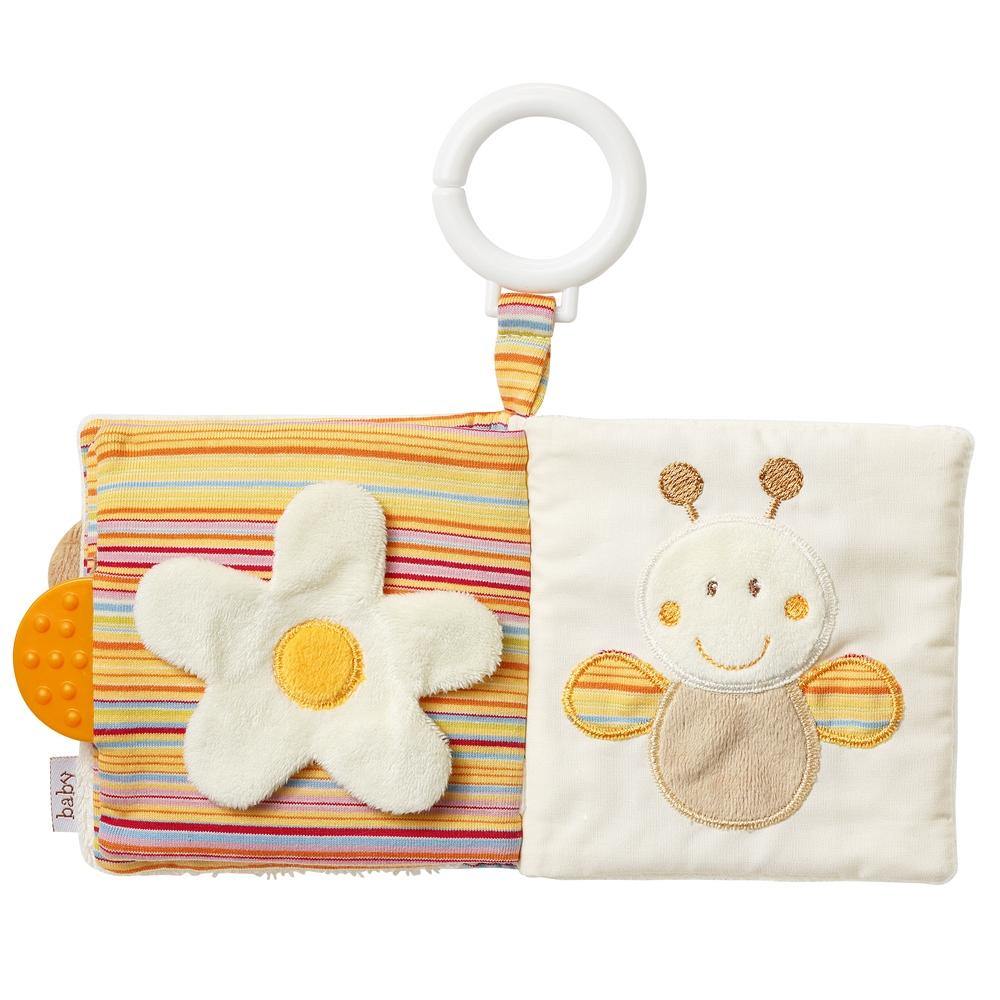 Páginas llenas de funciones emocionantes para sentir, captar y sorprenderse, el osito es un compañero perfecto para bebés y niños a partir de 0 meses. Gracias al anillo de sujeción, el libro se puede acoplar fácilmente al cochecito o la cuna.