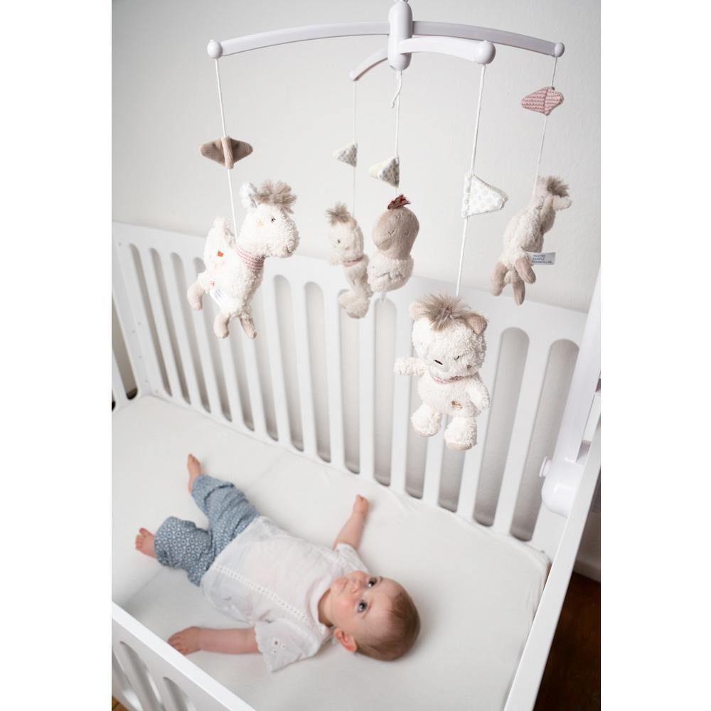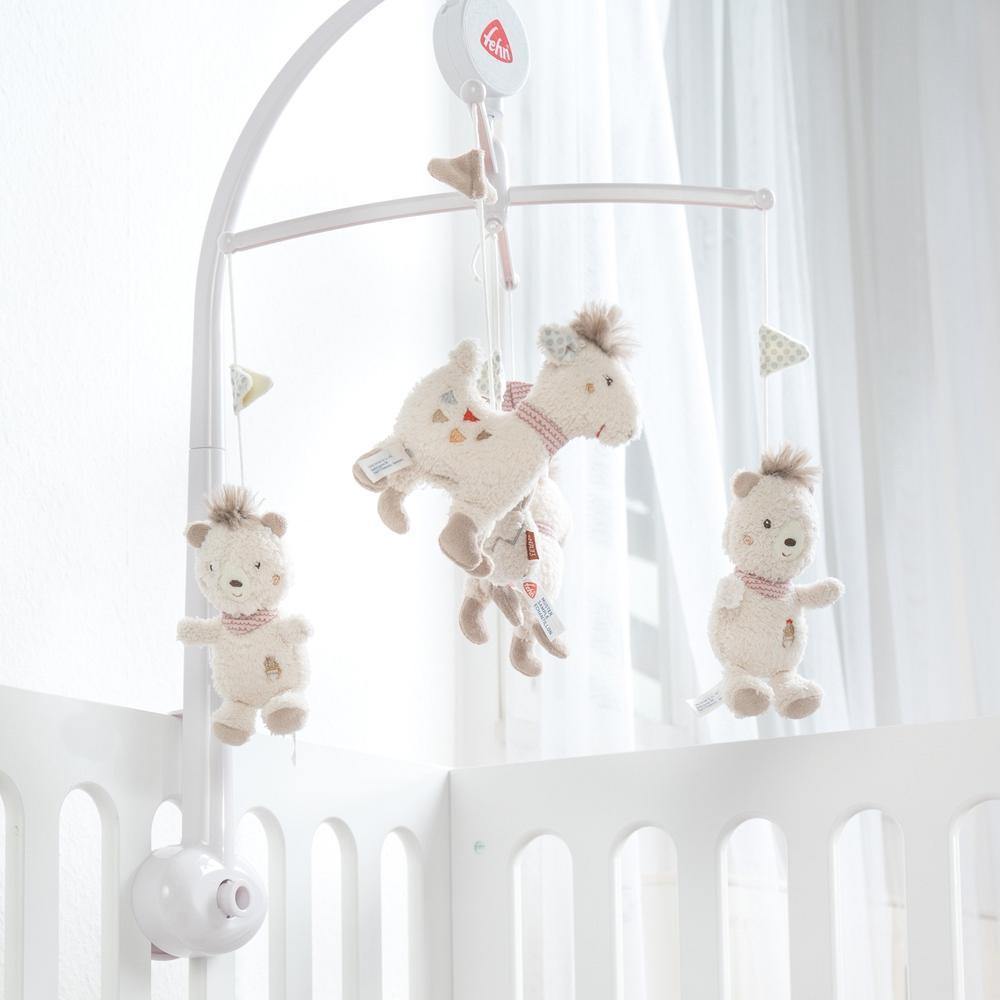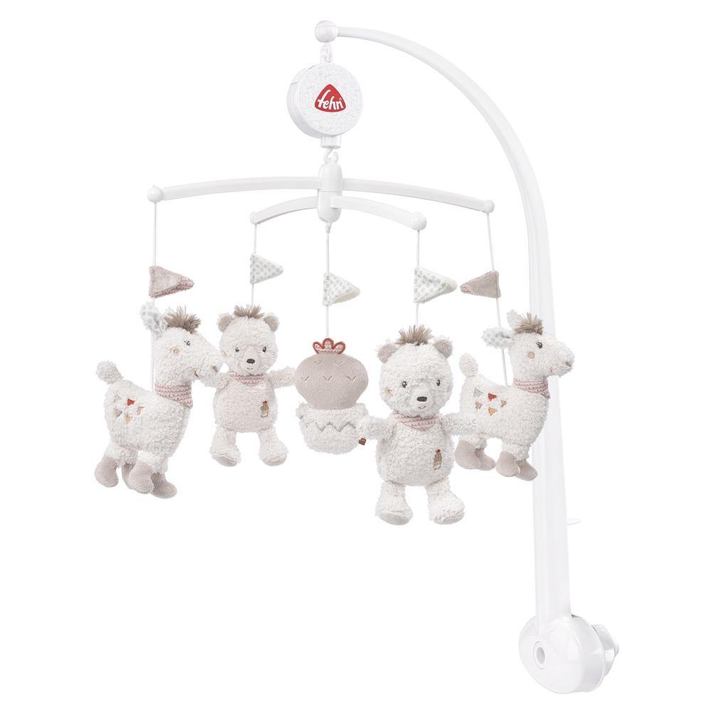 Móvil musical con lindas figuras para ver, escuchar y sorprenderse. La llama y sus amigos giran alegremente en círculo al son de la melodía, atraen la atención del bebé y estimulan su imaginación. Su diseño permite sujetarlo fácilmente a la cuna. Las figuras se pueden quitar fácilmente para jugar o lavarlas.