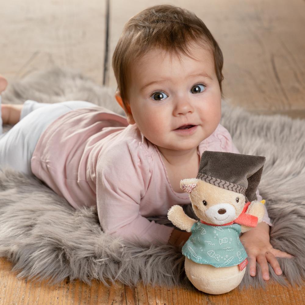 Observa, asómbrate, juegua y aprende: si el bebé da un golpe, la figura se mece, gira hace cabriolas y vuelve a levantántarse de nuevo.