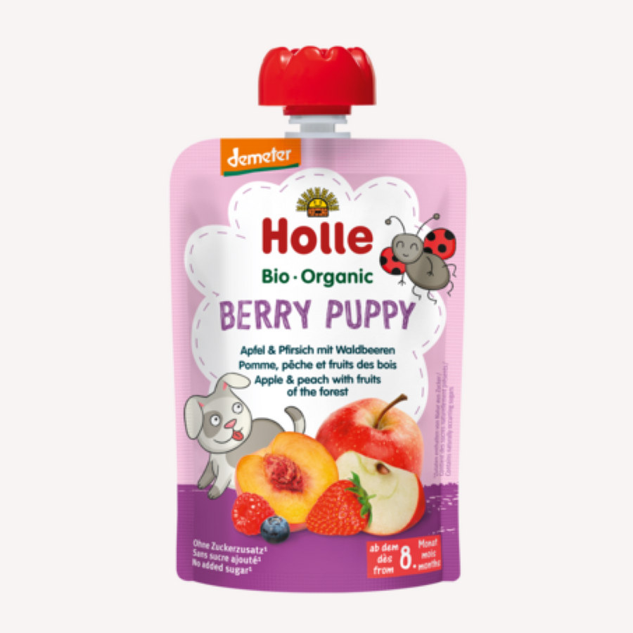Pouche De Manzana, Melocotón y Frutas Del Bosque Smoothie Holle