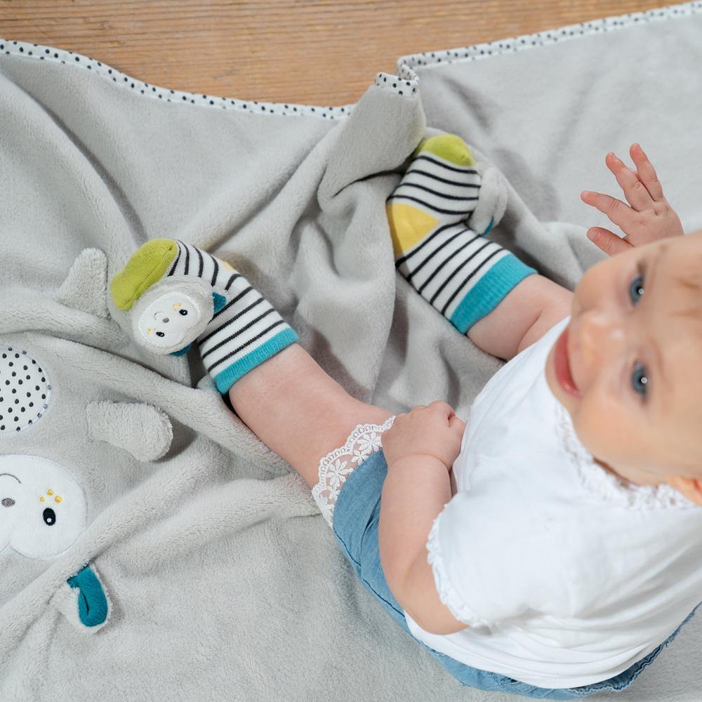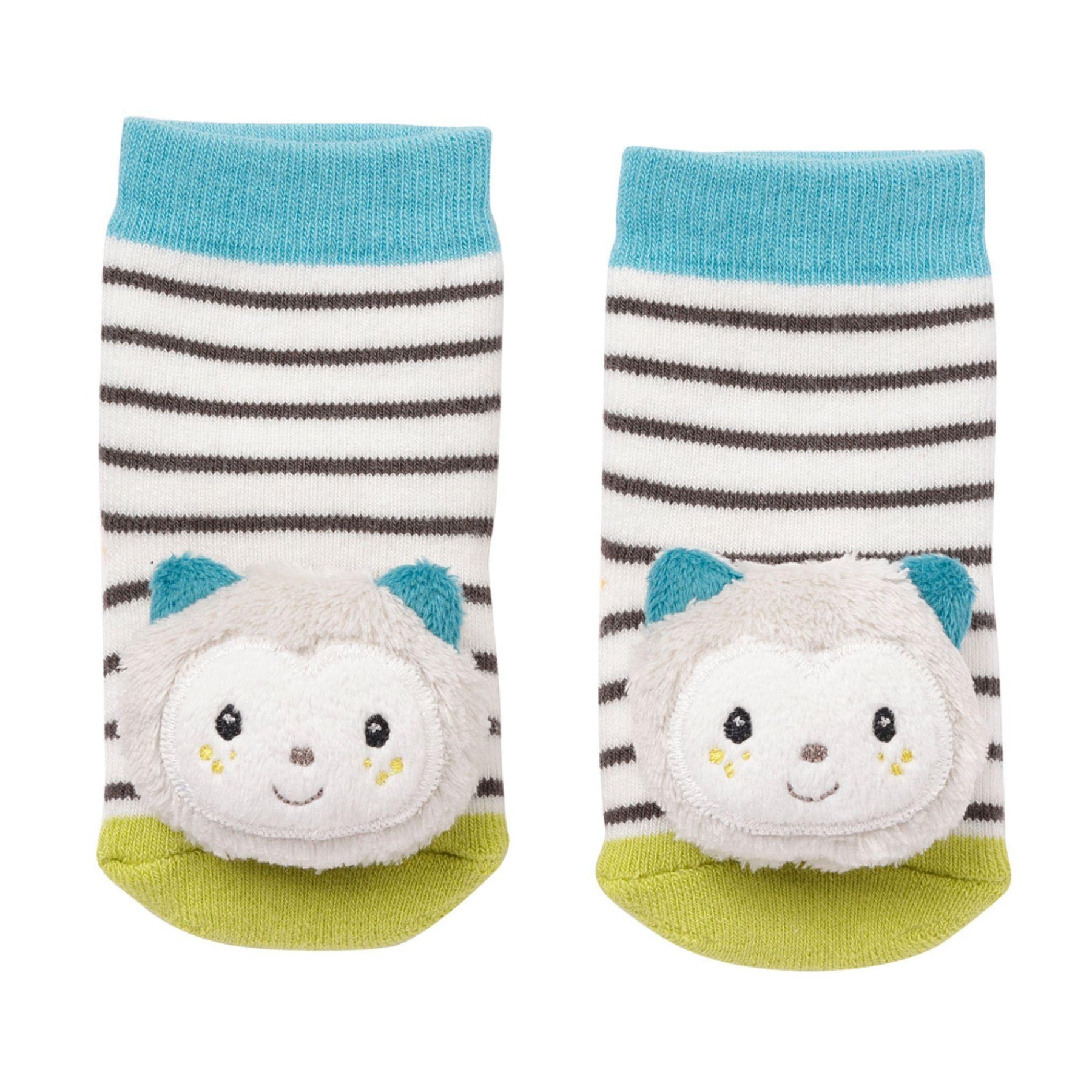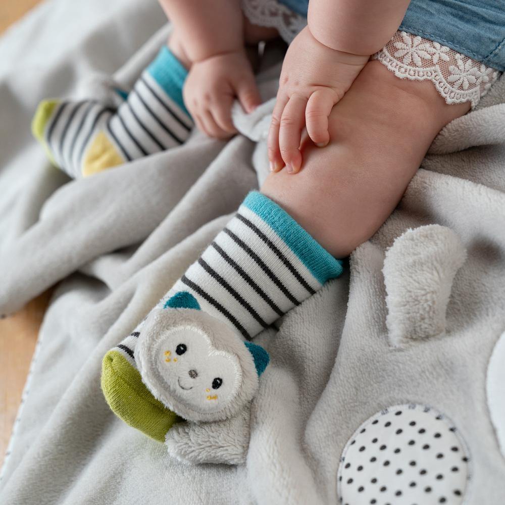 Calcetines de actividad para bebés con lindas cabezas de gato para agarrar, traquetear, patear y crear ruidos, juguete educativo para bebés de 0 a 12 meses