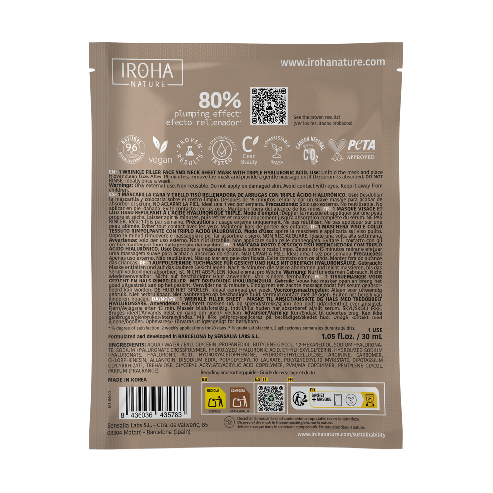 Mascarilla Facial Rellenadora de Arrugas con Triple Ácido Hialurónico