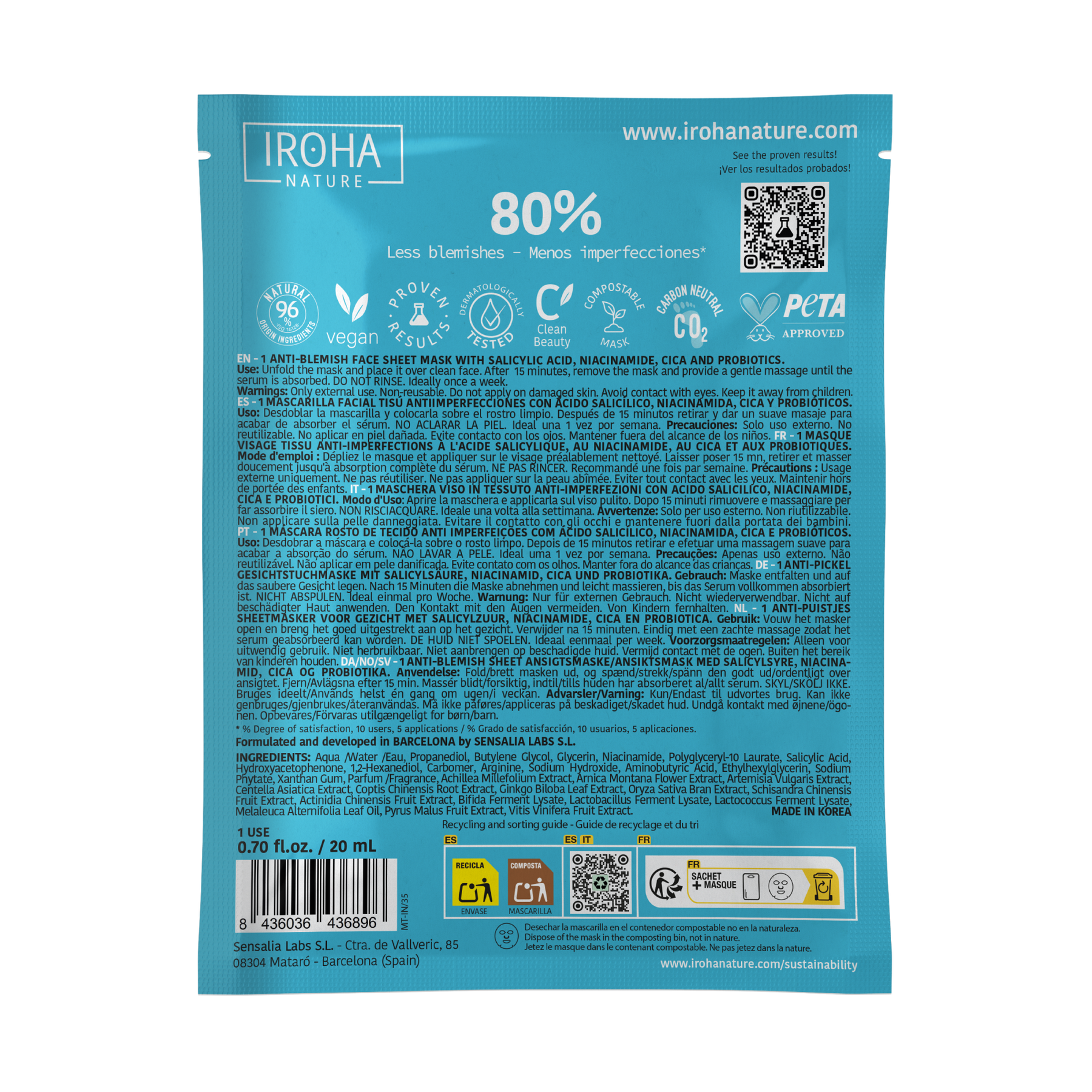 Ideal para pieles propensas a imperfecciones, esta fórmula exfoliante limpia profundamente los poros y combate el exceso de sebo, ayudando a reducir la aparición de granos y puntos negros.