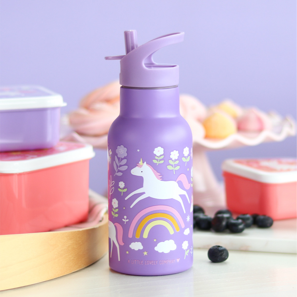 Mochila pequeña de la colección Unicorn con botella Unicorn y lunch & snackbox Unicorn. Ideal para salidas rápidas con un toque mágico de unicornio.