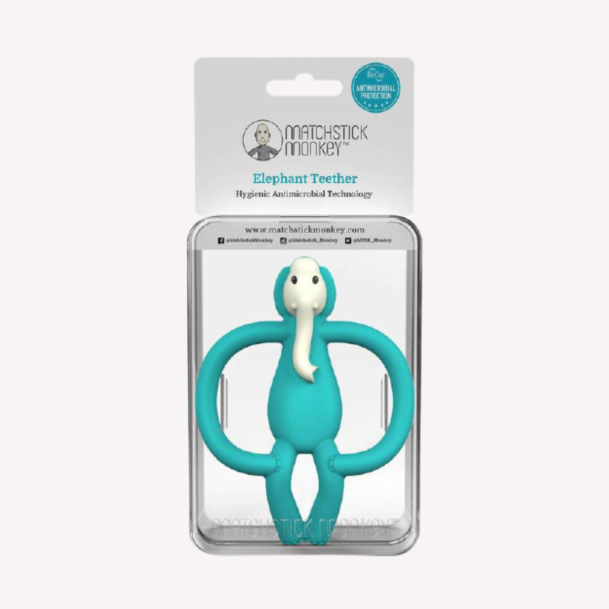 Divertido y flexible, tus pequeños pueden masticar lo que quieran mientras calman sus encías doloridas. La tecnología antimicrobiana BioCote® ayuda a mantener a raya a los gérmenes, mientras que las puntitos que hay detrás de la cabeza del monito llevan el mordedor para la dentición directamente a la fuente del dolor, sin necesidad de dedos. Mordedor del animal elefante.