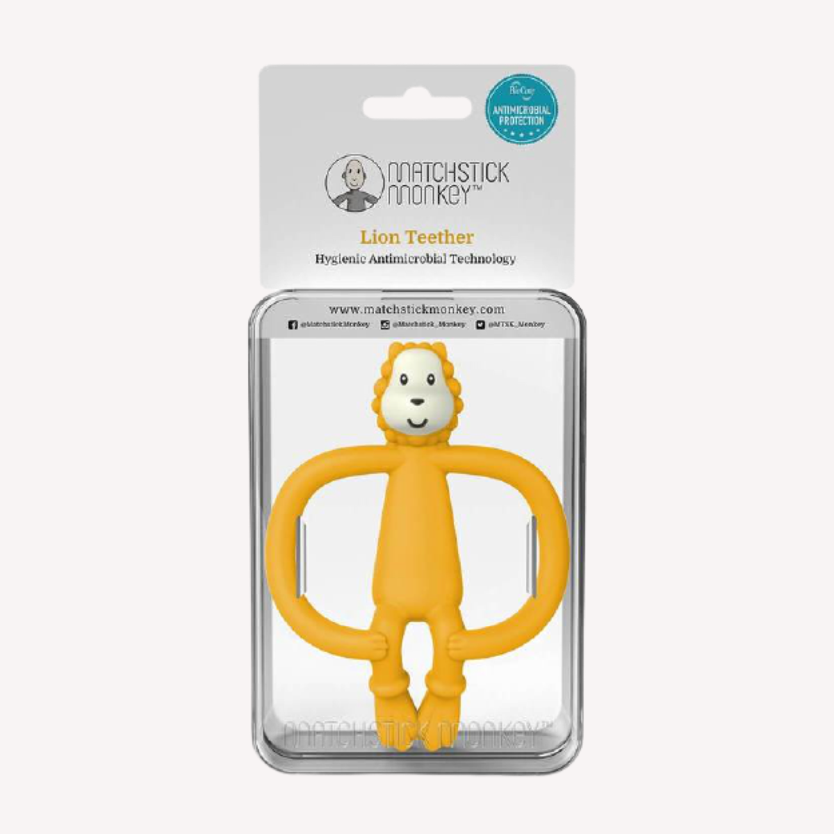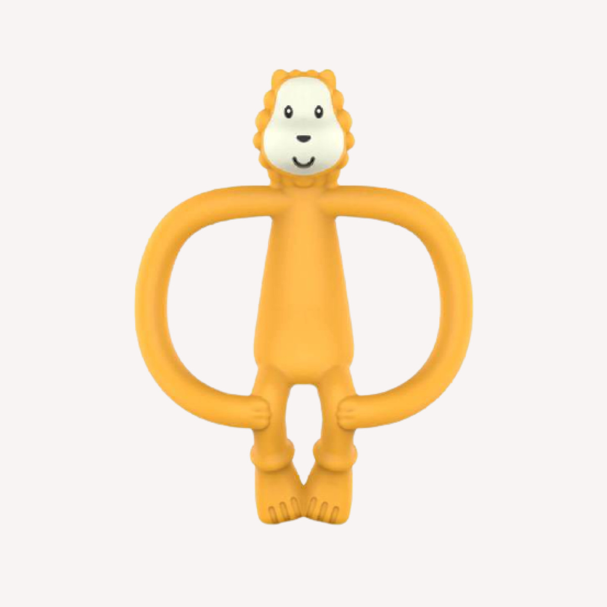 Divertido y flexible, tus pequeños pueden masticar lo que quieran mientras calman sus encías doloridas. La tecnología antimicrobiana BioCote® ayuda a mantener a raya a los gérmenes, mientras que las puntitos que hay detrás de la cabeza del monito llevan el mordedor para la dentición directamente a la fuente del dolor, sin necesidad de dedos. Mordedor del animal león.