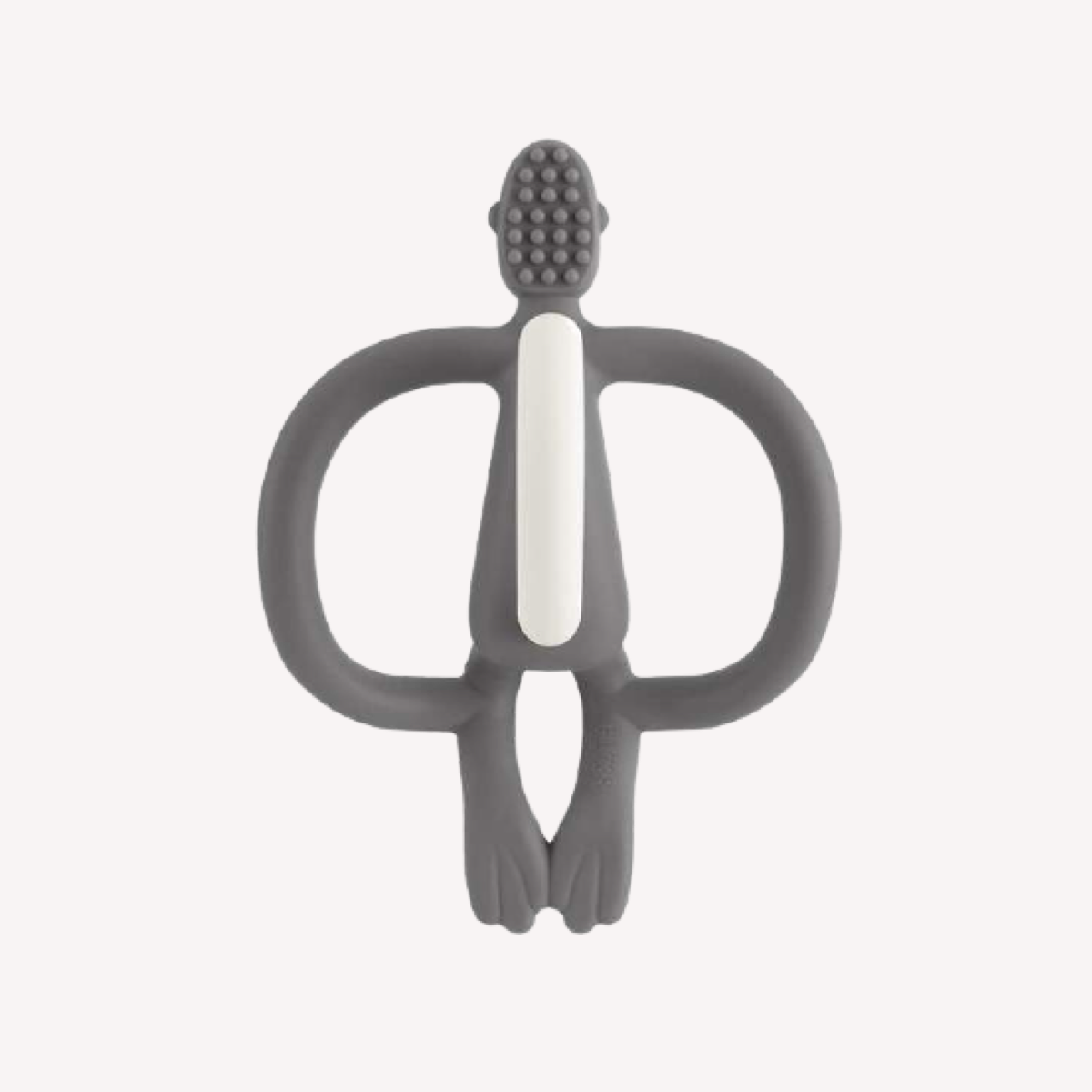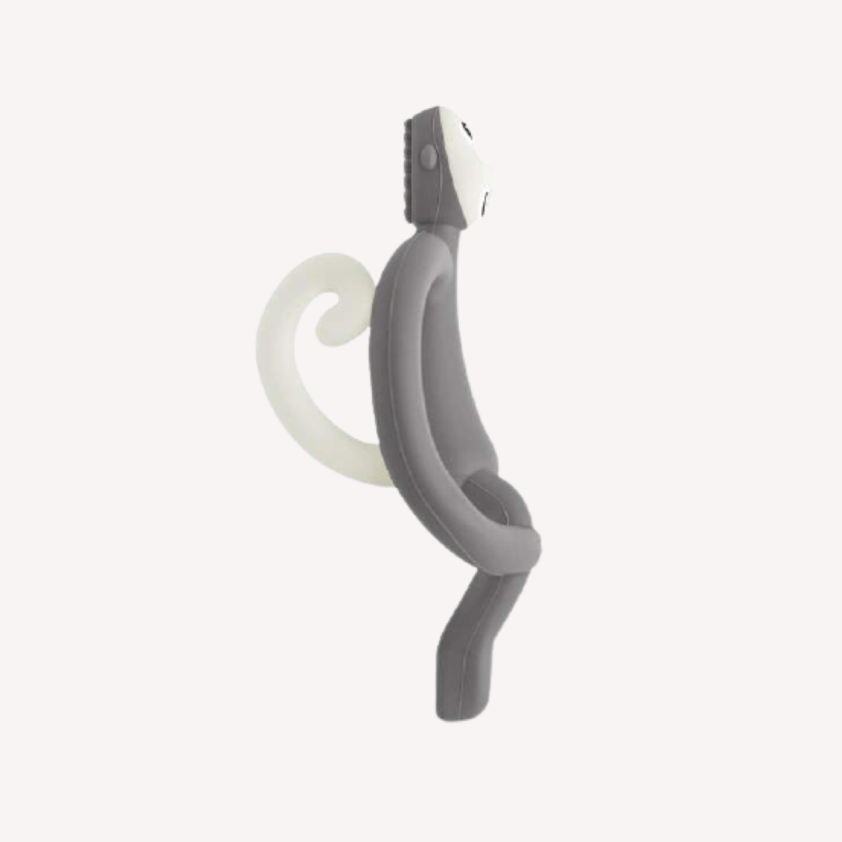 Divertido y flexible, tus pequeños pueden masticar lo que quieran mientras calman sus encías doloridas. La tecnología antimicrobiana BioCote® ayuda a mantener a raya a los gérmenes, mientras que las puntitos que hay detrás de la cabeza del monito llevan el mordedor para la dentición directamente a la fuente del dolor, sin necesidad de dedos. Color Gris.
