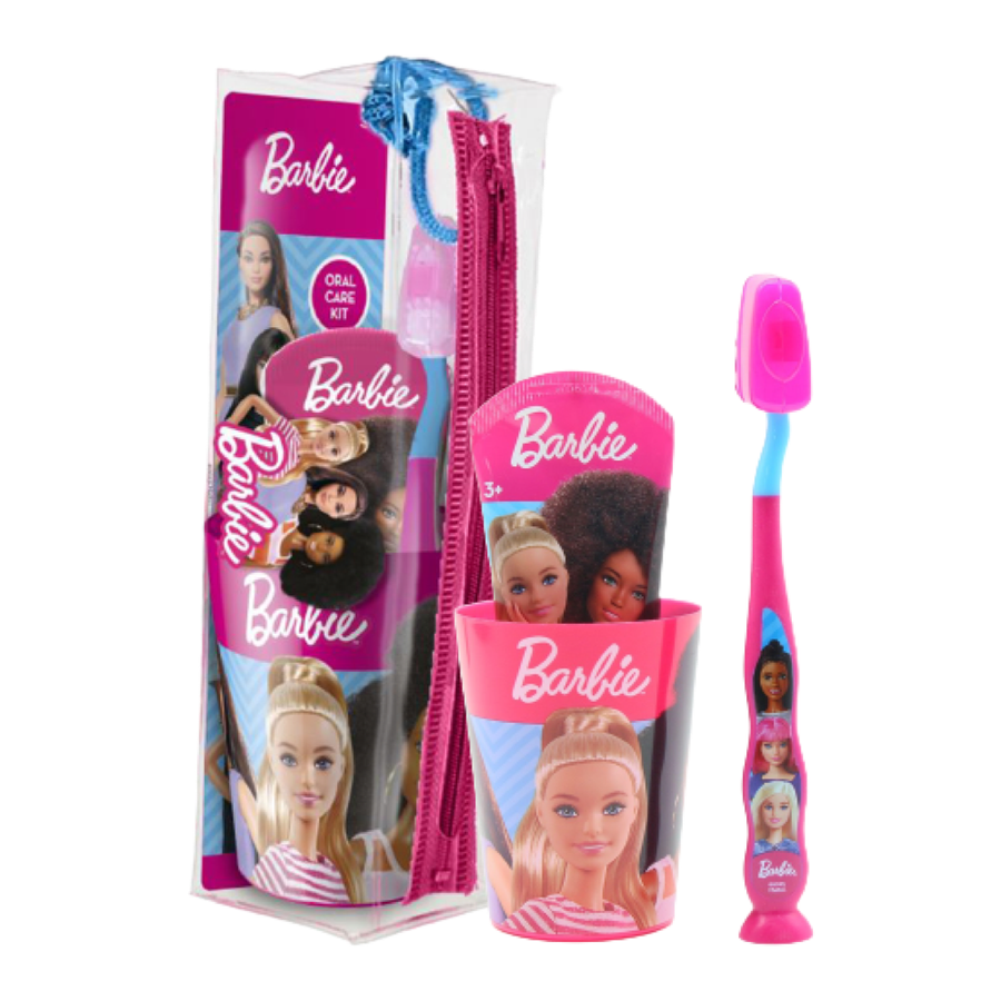 Estuche Barbie con Cepillo, Vaso y Pasta de Dientes