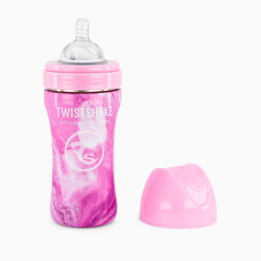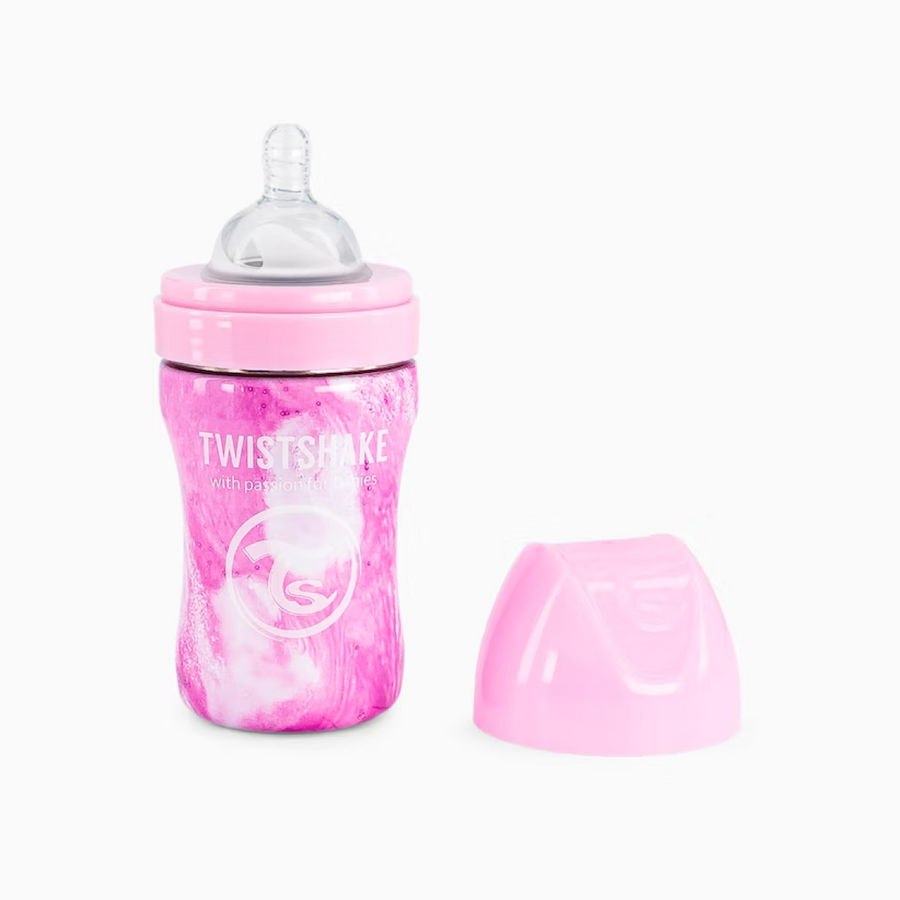 Biberón Acero Anticólico 260ml Estampado Mármol Rosa Twistshake