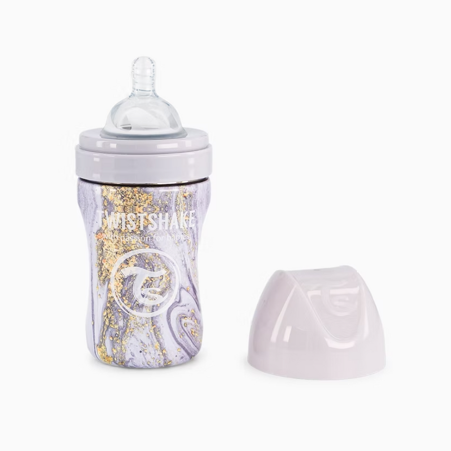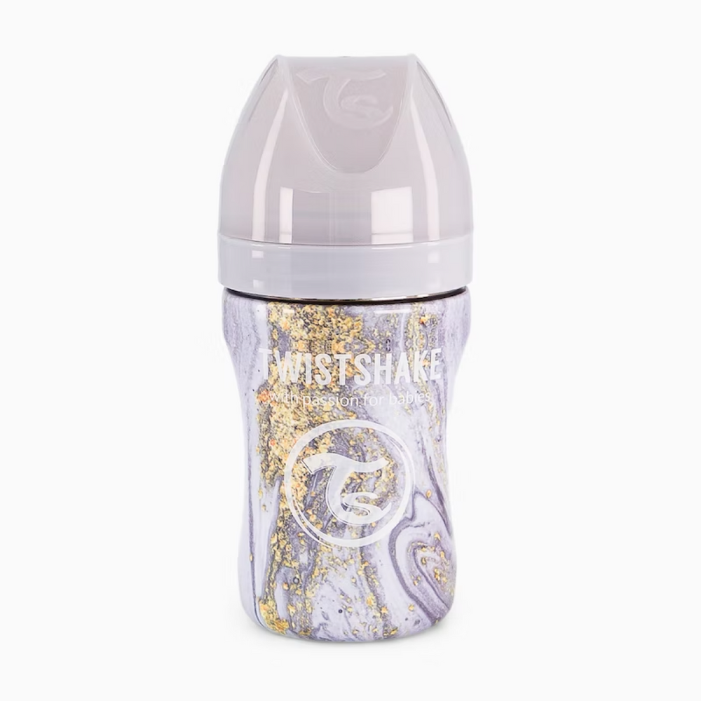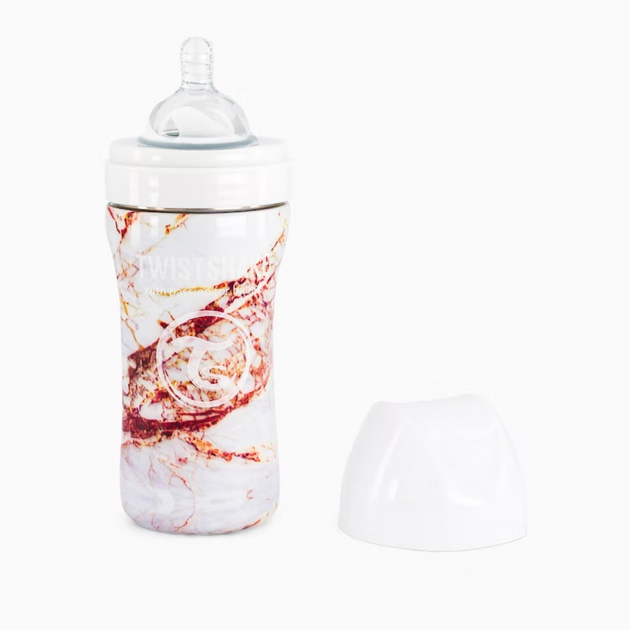 Biberón Acero Anticólico 260ml Estampado Mármol Blanco Twistshake