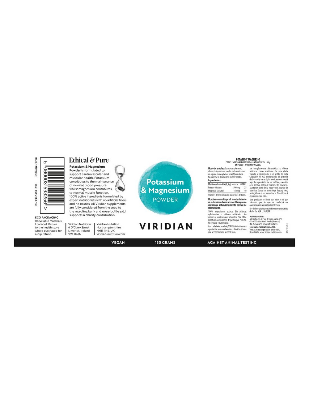 Potasio y Magnesio en Polvo – 150 g