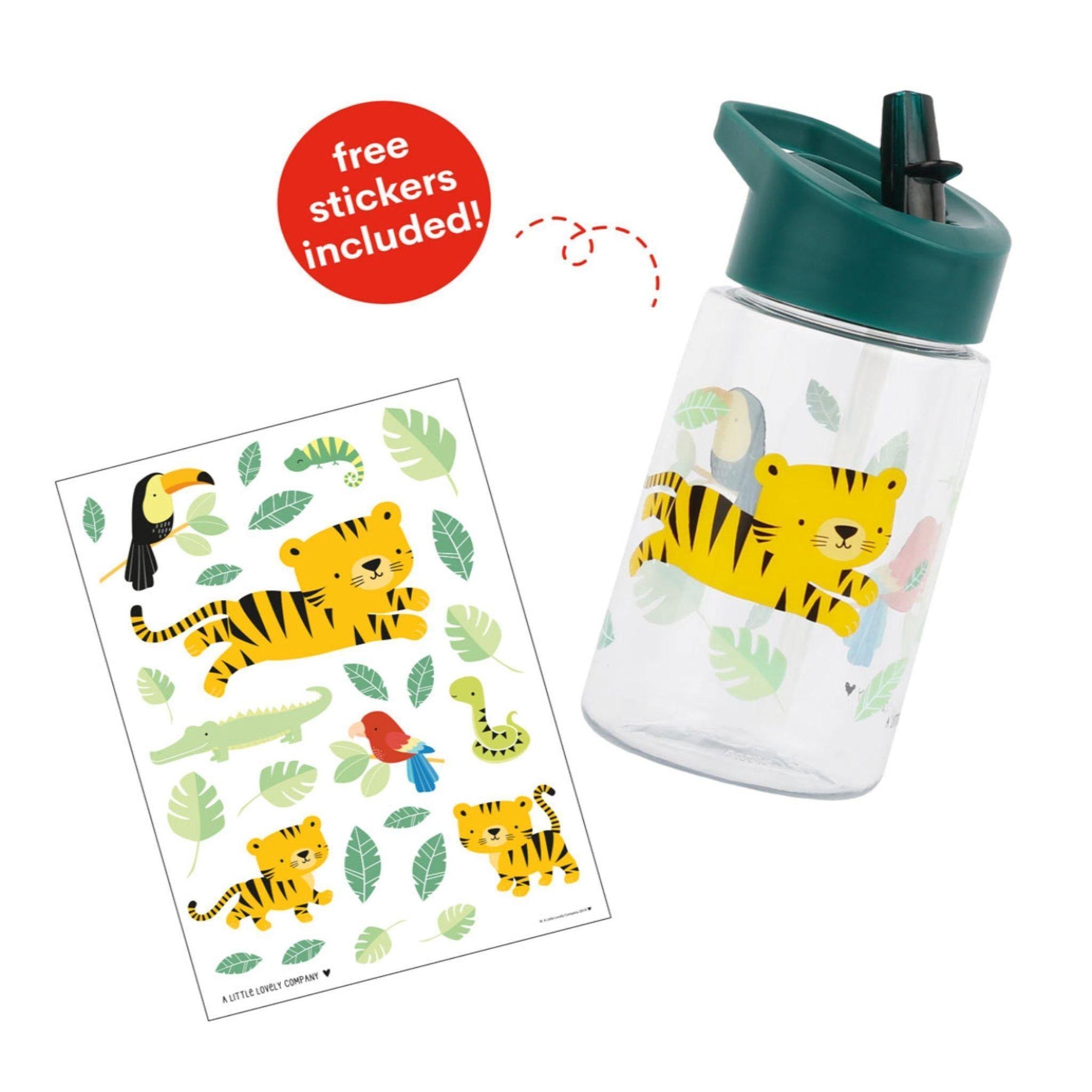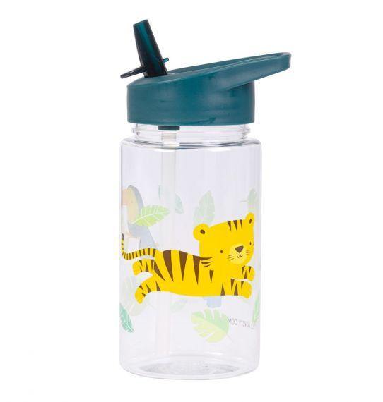 La botella con estampado de tigre no debe faltar en la bolsa de la escuela o durante un día fuera. La botella está hecha de Tritan y tiene una práctica boquilla con una pajita que hace que derramar algo sea cosa del pasado.