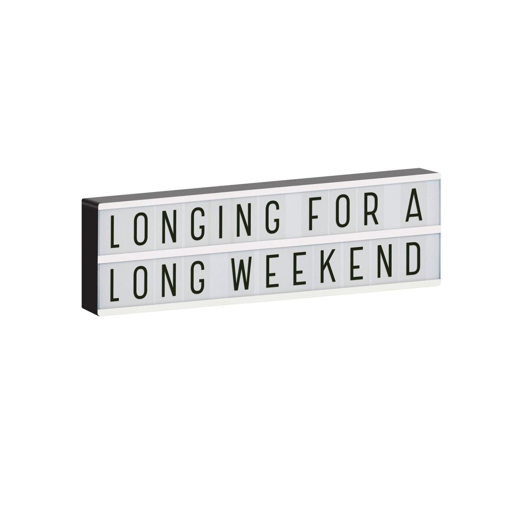 Práctica caja de luz larga A5 con dos filas para todas sus citas y mensajes. Crea nuevos textos simplemente deslizando las letras, mezcla y combina todas las letras y símbolos.