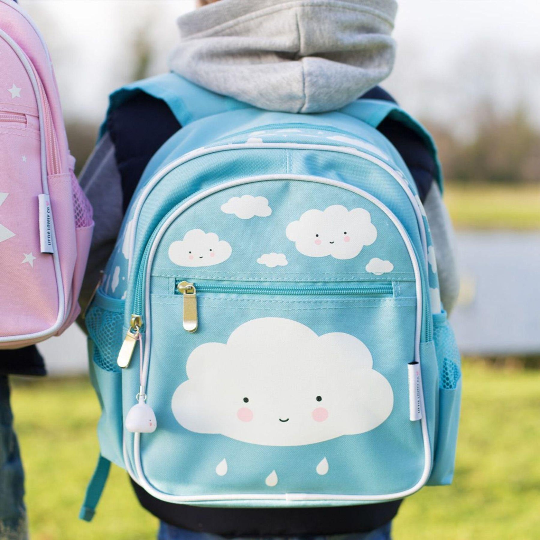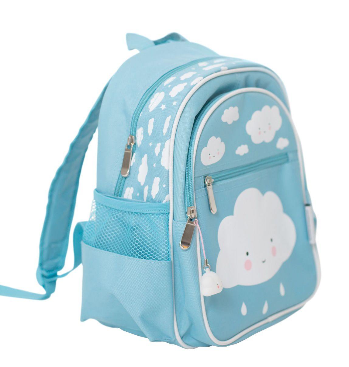 Nuestra mochila azul con estampado de nubes es un imprescindible para los niños y niñas. El compartimento principal de la mochila es lo suficientemente grande para guardar el material escolar y el almuerzo, tambien cuenta con dos bolsillos delanteros y dos laterales