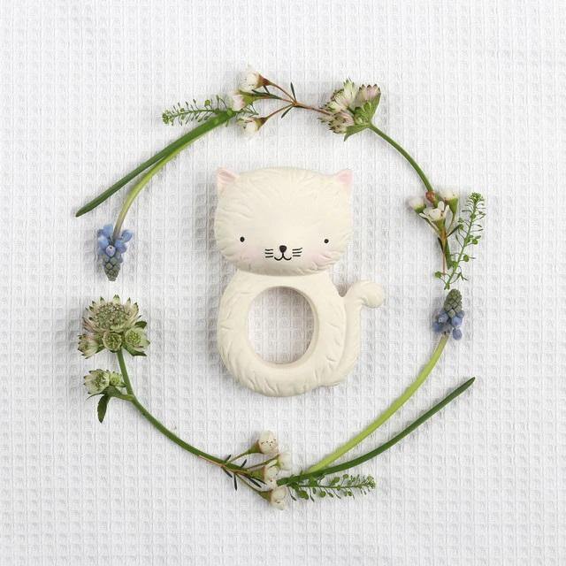 ¿Están saliendo los primeros dientes de su bebé? Entonces nuestro mordedor kitty es el amigo ideal. El mordedor no contiene sustancias nocivas, está hecho de caucho 100% natural del árbol de Hevea y tiene un aroma sutil. Perfecto para cualquier niño que sufra con la dentición.