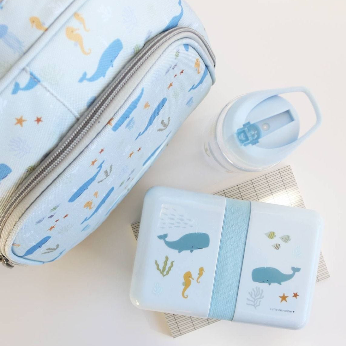 Esta hermosa mochila con compartimento aislado tiene mucho espacio y garantiza que los bocadillos y las bebidas se mantengan fríos o calientes. Tiene dos bolsillos laterales y una hebilla extra en la parte delantera. La botella de bebida tiene un práctico pico y una pajita que hace que derramar sea cosa del pasado. Una lonchera con elástico siempre es útil, especialmente si tiene suficiente espacio para varios bocadillos. ¡Además, cabe en cualquier mochila!