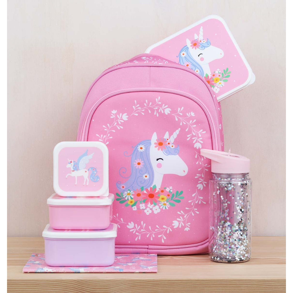 Mochila Grande Unicorn, Botella de Acero y Tupper Unicorn Little para Niños