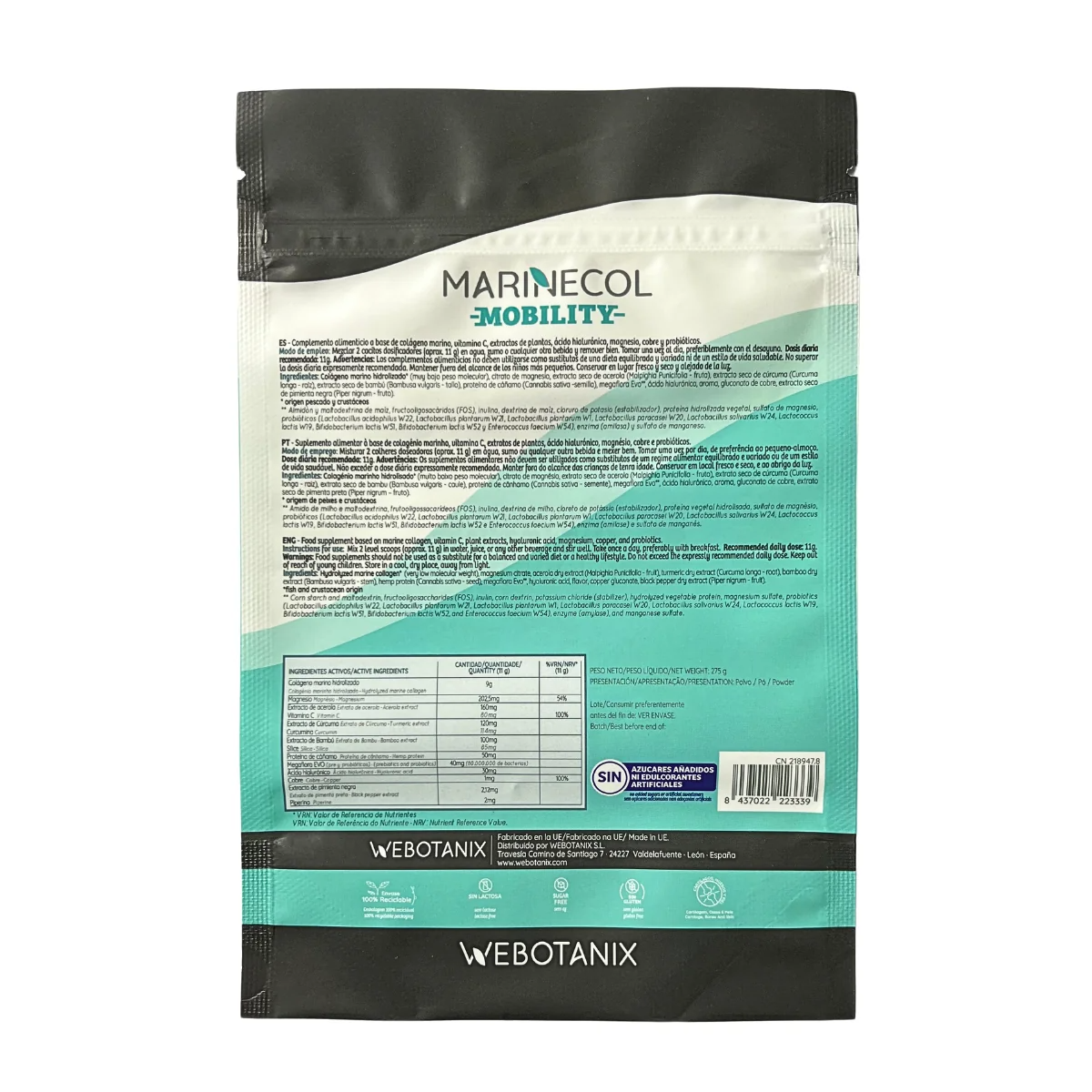 Colágeno marino hidrolizado enriquecido con ingredientes que contribuyen al cuidado de articulaciones, cartílagos y músculos, favoreciendo la movilidad y flexibilidad.