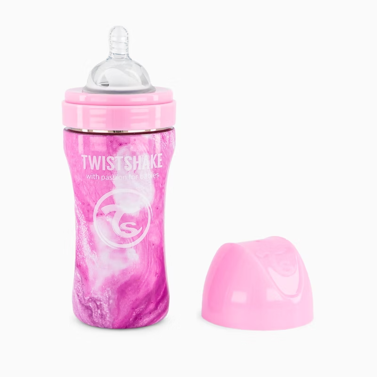 Biberón Acero Anticólico 330ml Estampado Mármol Rosa Twistshake